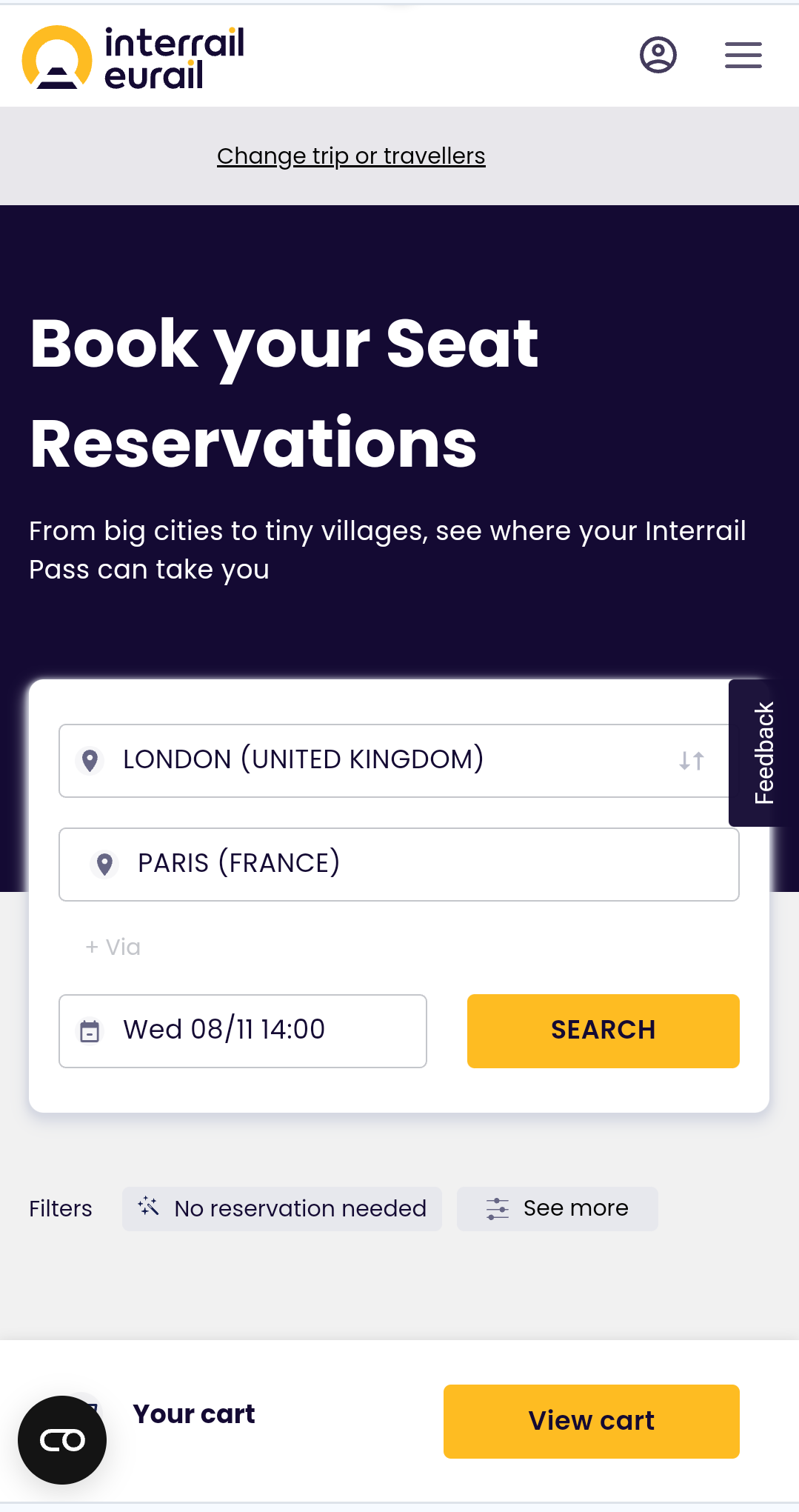 - No seat reservations required: This will filter out any trains with seat reservation requirements, so you don't have to pay any extra money for the train you’re travelling on.